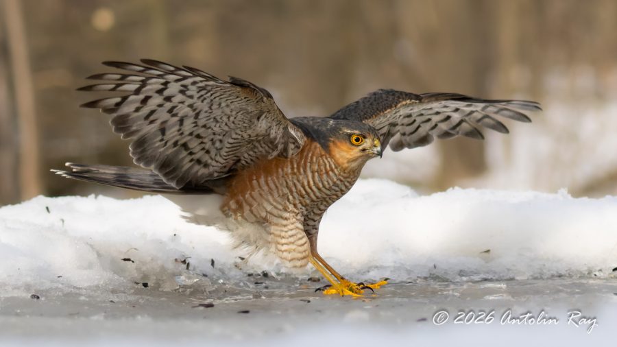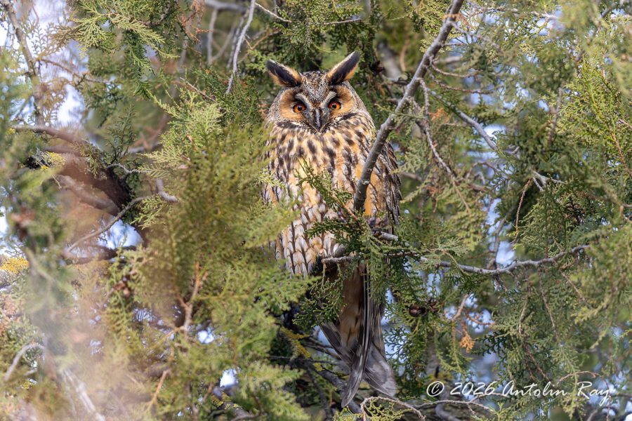 Pero no le faltaba la compañía de varias especies de córvidos (cuervo, grajilla, corneja cenicienta, urraca, grajo), y picapinos. También tuvimos ocasión de fotografiar una colonia de búhos chicos y de pasar unas horas en un hide de paseriformes, al que se acercó un gavilán que deleitó durante cerca de media hora a los que estaban allí.