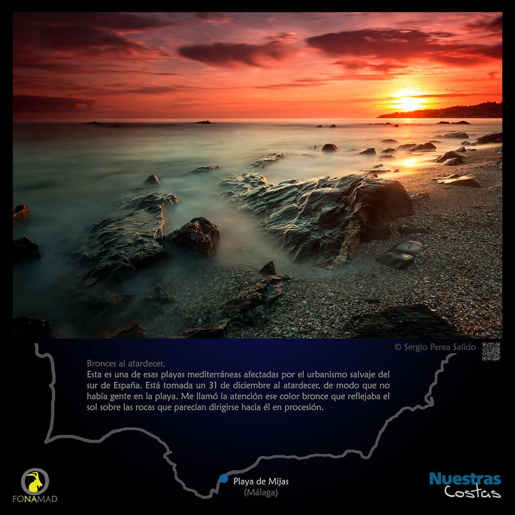 FONAMAD presenta treinta miradas diferentes sobre nuestras costas en las que se ha obviado la huella del hombre y las amenazas de su codicia. Es deliberado, estas fotografÌas no son una denuncia. Son una reivindicación de lo que tenemos, de lo que no queremos perder, de lo que deberíamos conservar. Treinta escenarios del litoral español en los que el mar y el viento construyen un paisaje vivo anclado en lo más profundo de nuestra memoria. Esa magia, que solo la luz es capaz de derramar, se traduce en una infinita paleta de colores que van desde los rojos ígneos del amanecer a los dorados instantes de una cálida mañana transitando hasta los profundos azules con los que se despide el día. Luces que perfilan, que dibujan, que proyectan sombras alargadas, que juegan a esconderse en el misterio del claroscuro. Ambientes oníricos que se despliegan ante nuestra atónita mirada cuando la luz se filtra a través de la niebla o el dosel de hojas de un bosque en otoño, que brilla y se refleja en el agua que como un prisma disgrega la luz en su arcoíris esencial. Os invitamos a recorrer esta exposición con los ojos bien abiertos y el alma receptiva a dejarse llevar por el viento para sobrevolar las visiones tan diversas que componen este recorrido por algunos de los fenómenos más impresionantes, sutiles o misteriosos que nos brinda la Naturaleza.