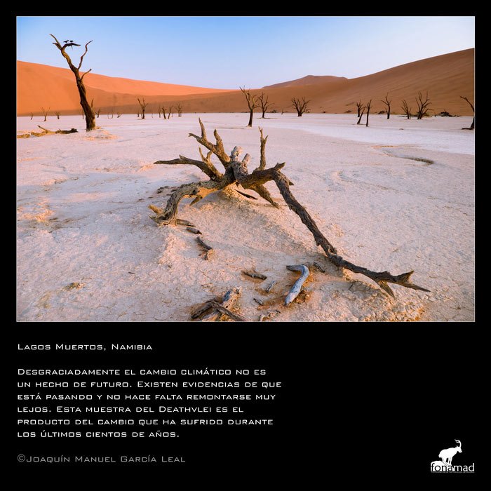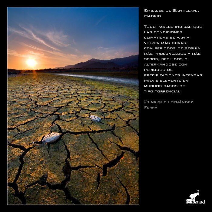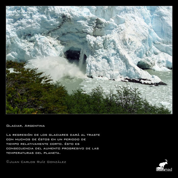 Desaparición de glaciares y de especies de alta montaÒa, desertización y pérdida de biodiversidad, fenómenos atmosféricos inusuales, sequías e incendios, subida del nivel de los mares y salinización de acuíferos… todo ello reflejadp en esta colección de imágenes que buscan llamar nuestra atención sobre el problema y despertar nuestras conciencias antes de que el proceso sea irreversible.