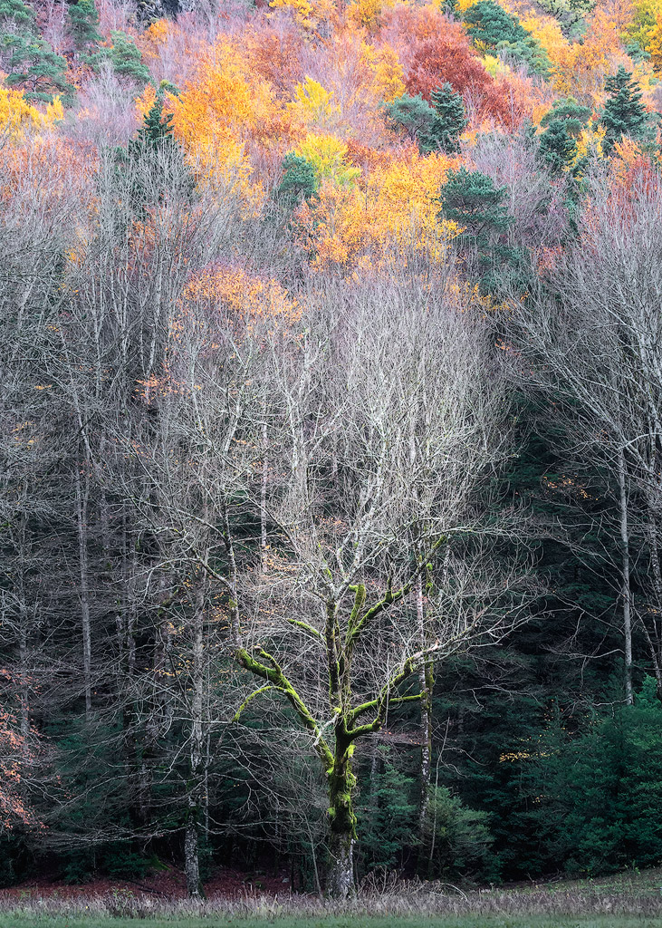 Este mes os proponemos un tema clásico y que está en su apogeo en nuestras latitudes: el otoño. Esa estación mágica para los fotógrafos de naturaleza en la que el tiempo lluvioso, con nieblas y brumas o cuando menos nublado, invita a perderse en los bosques de hoja caduca que lucen sus mejores galas cuando el primer frío y el menor número de horas de luz atenúan la clorofila que da paso a otros pigmentos, carotenos y xantofilas, que tiñen de colores cálidos sus hojas. Y eso es justo lo que buscamos, colores y ambientes otoñales, de grandes bosques a pequeños detalles de hojas y setas, todo con el inconfundible tono de esta estación.